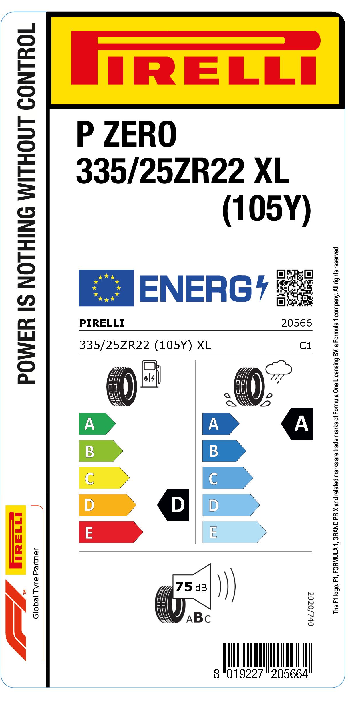 Neumático de Verano para Turismos Pirelli Pzero con medidas 335/25 R22 índice de carga 105 y código de velocidad Y - Recuerda que en neumáticos de verano, la legislación permite montar neumáticos con índice de carga o código de velocidad superior al homologado en la ficha técnica del vehiculo, siempre y cuando los neumáticos sean iguales por eje.-